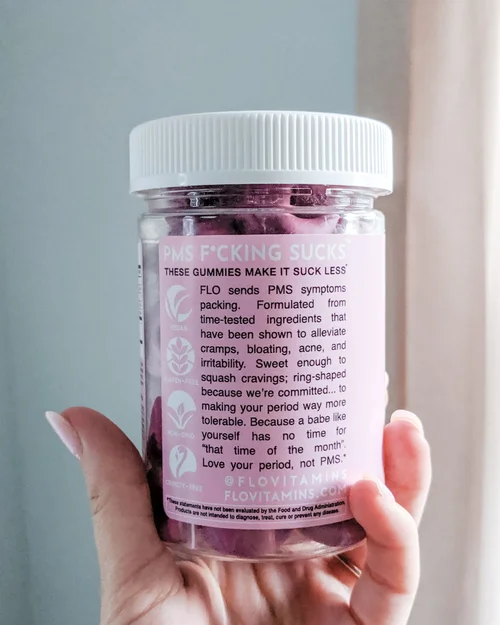 FLO makes gummy supplements specifically for women. FLO are gummy vitamins that claim to reduce symptoms of PMS. On the other hand the addition of Vitamin B6 in Flos formula is well-deserved.